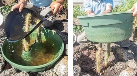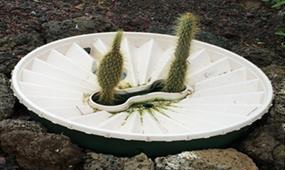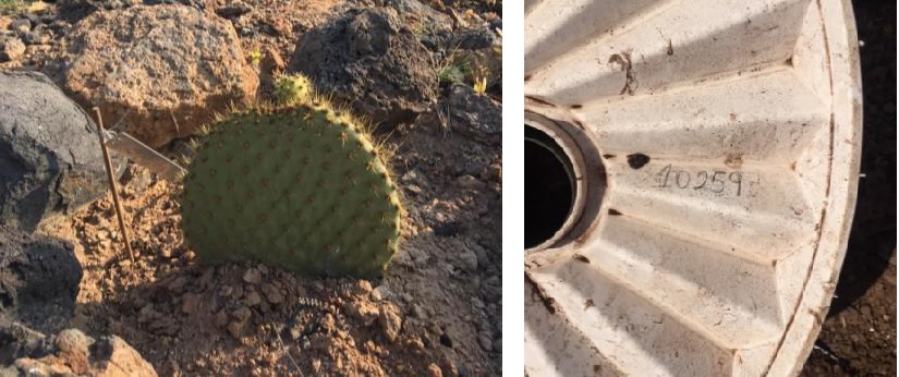 se plantan cladodios de Opuntia, no entran en el espacio para la planta, por ello se deben doblar las dos pestañas del medio para crear un espacio más grande donde entre el cladodio. Esta placa tiene que estar cubierta completamente con una capa de tierra.