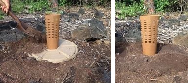 + Limpiar las malas hierbas y/o plantas invasivas circundantes. + Si la ubicación de la planta no es clara, colocar piedras alrededor de la planta para señalar la atención hacia la misma. + Si la tapa de una caja Cocoon o Growboxx se ha caído adentro, rellenarla y cubrirla con tierra circundante. + Si la placa metálica no es clara o se encuentra dañada, reemplácela.
