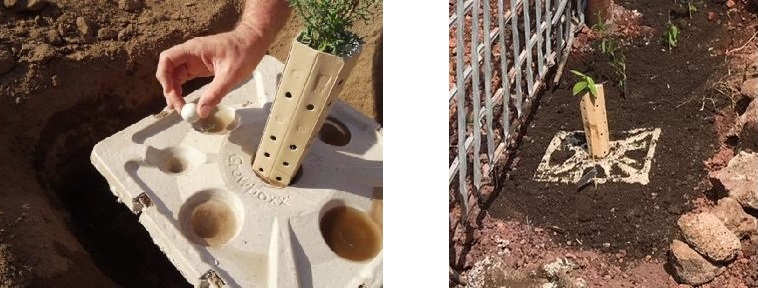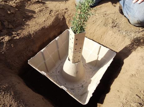 Las tecnologías Waterboxx se retiran de las plantas una vez que han alcanzado el tamaño suficiente para sobrevivir por sí mismas y pueden ser reutilizada.