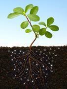 Siembre la planta asegurándose que la tierra mezclada con hidrogel rodea las raíces de la planta.