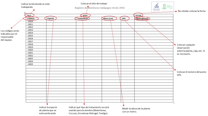 El primer monitoreo usualmente se lo realiza el momento de la siembra, para ello se necesita registrar los datos manualmente. Es importante llenar todos los campos en cada hoja y en orden a pesar de que la fecha y el sitio se repitan (Figura 26). Esto puede evitar confusiones al momento de ingresar los datos al sistema después de la salida. Si es que existen errores, es preferible tachar y volver a escribir el dato antes que borrarlo o corregirlo, esto permitirá que los datos sean correctos y legibles.