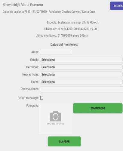 Usamos una aplicación de Android diseñada específicamente para GV2050, que puede ser encontrada [aquí](www.galapagosverde.com/admin). Se la usa para programar la siembra y el monitoreo de plantas, registrar datos de las especies y sitios de estudio. Es donde todos los datos del proyecto son recopilados y transferidos para ser analizados. Cada miembro del personal, o a veces voluntarios, tienen su propio código de acceso para ingresar a la plataforma y programar el trabajo en cada sitio, junto con su nombre y cargo. Conectado a una plataforma virtual, GV2050 tiene una aplicación Android para el registro de datos en el campo. Antes de una salida de campo, el sitio de estudio debe ser puesto en agenda, permitiendo que los datos de las plantas en el sitio puedan ser ingresados sin conexión.