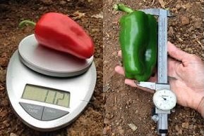 - Recolecte datos sobre el tamaño de cada fruto, pimiento o tomate, midiendo el largo y ancho de cada fruto. Pese cada fruto al kilogramo más cercano (Figuras 35).