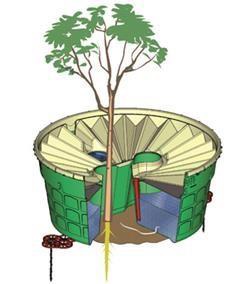 La caja protege a la planta y almacena el agua recolectada. La caja actúa como una capa de protección para el agua en la parte superior del suelo, y esta agua luego se dispersa hacia abajo y hacia afuera en lugar de ser atraída hacia la superficie y ser evaporada.
