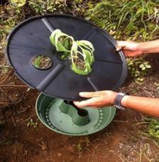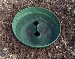Se coloca una placa de evaporación de plástico alrededor de la planta, sobre o justo debajo de la superficie del suelo, para reducir la evaporación del agua en el suelo.