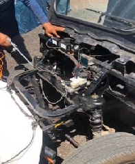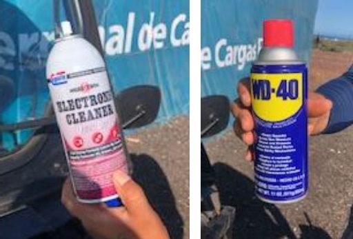 - Rocíe el limpiador de conexiones electrónicas (Figura XX) en todas las conexiones una vez que se ha lavado el carro.
